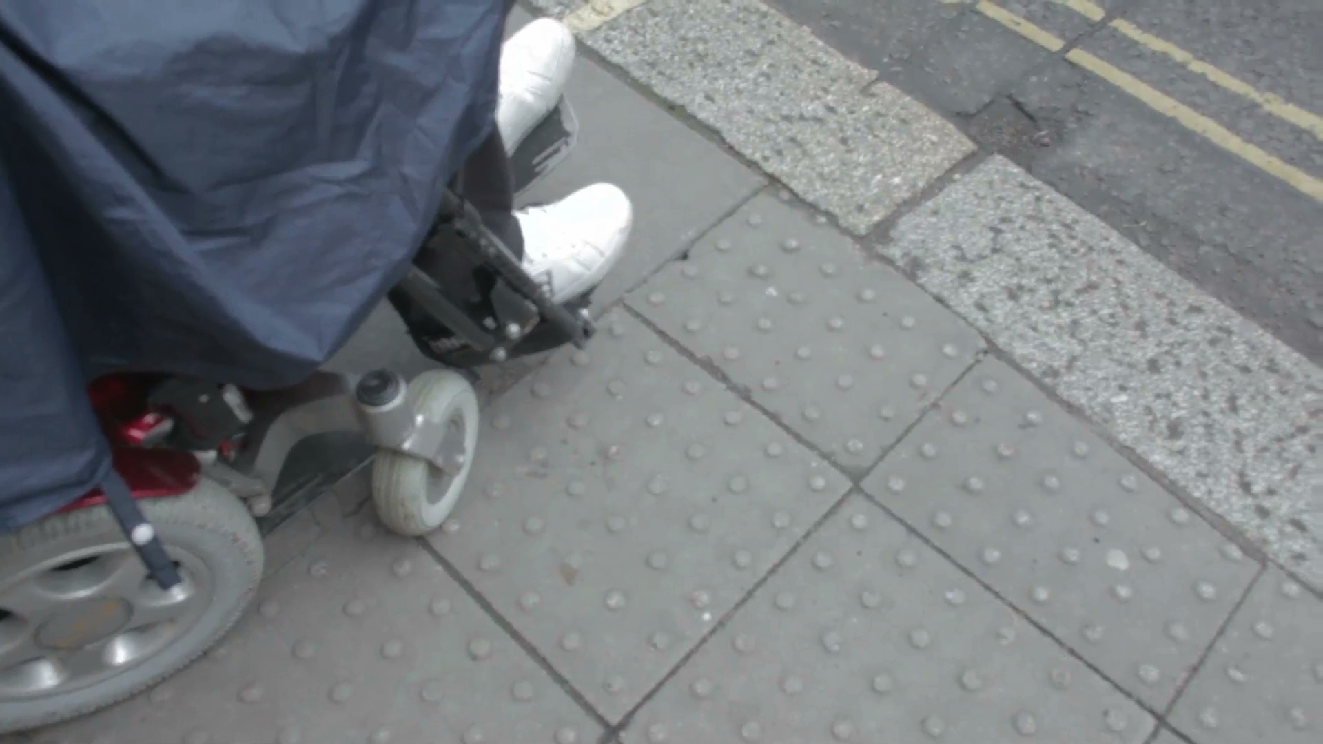 Cobbles and lack of dropped kerbs make it difficult for scooter users at Bath St/Store St corner
